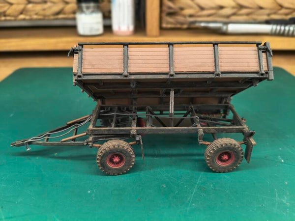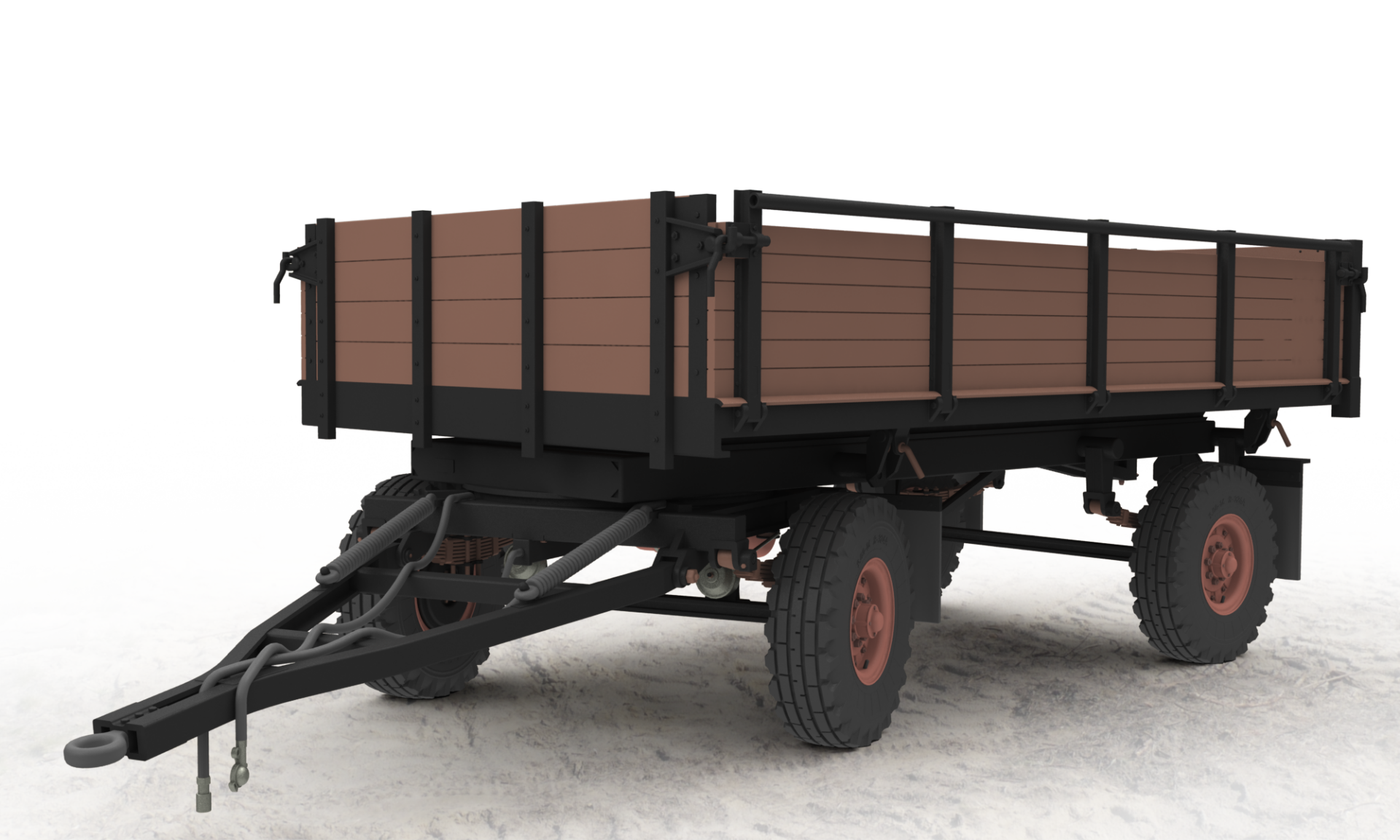 Der 2PTS-4,5 ist ein zweiachsiger Anhänger für die Landwirtschaft mit drei kippbaren Seiten. Der Anhänger kann eine Zuladung von maximal 4,5 t aufnehmen und ist für Traktoren ab 55 kW / 75 PS geeignet.