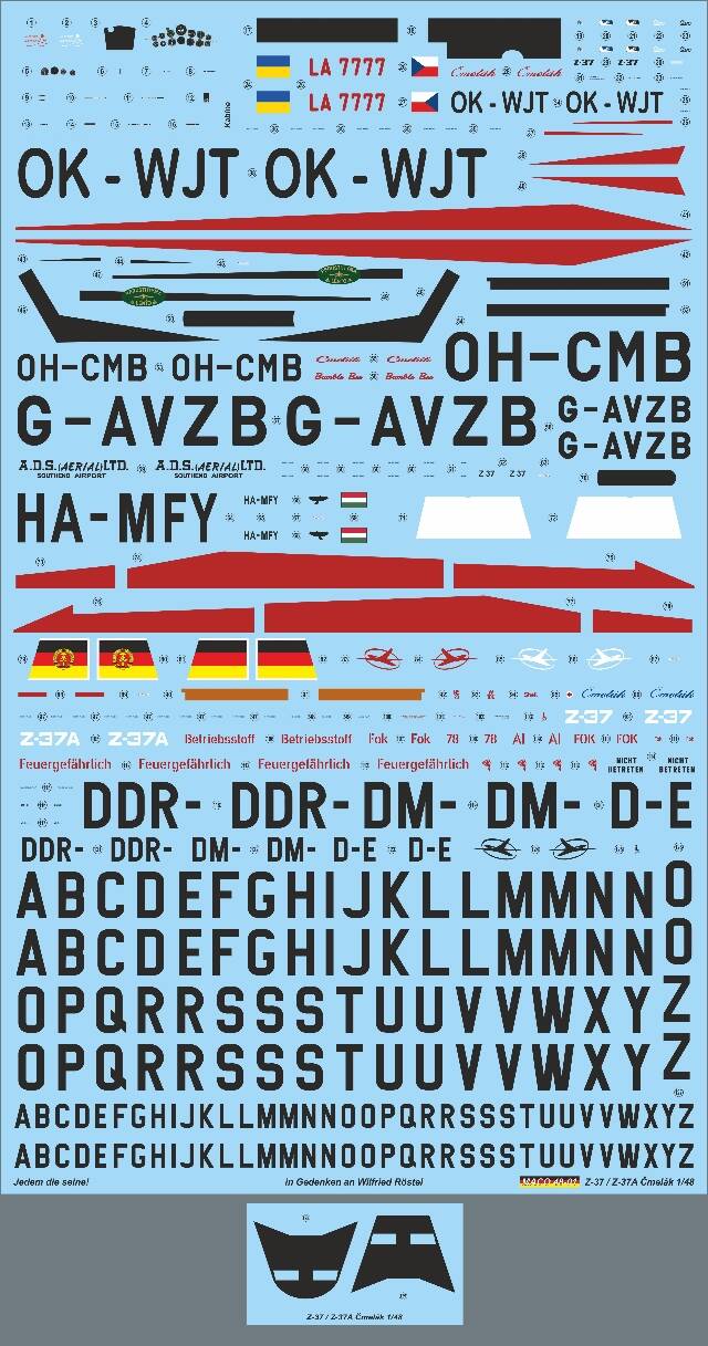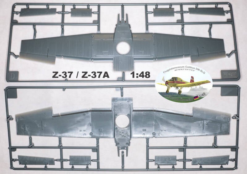 Stavebnice nepostaveného plastového modelu v měřítku 1/48. Stavebnice obsahuje 105 součástek v 9 rámečcích, velký obtiskový aršík a maskovací fólie. Alternativně lze postavit jeden z 229 Z-37/Z-37A NDR Interflug (jakákoli identifikace je možná!). Alternativně jsou možné Z-37 s ukrajinskou, českou, finskou, britskou, maďarskou identifikací.