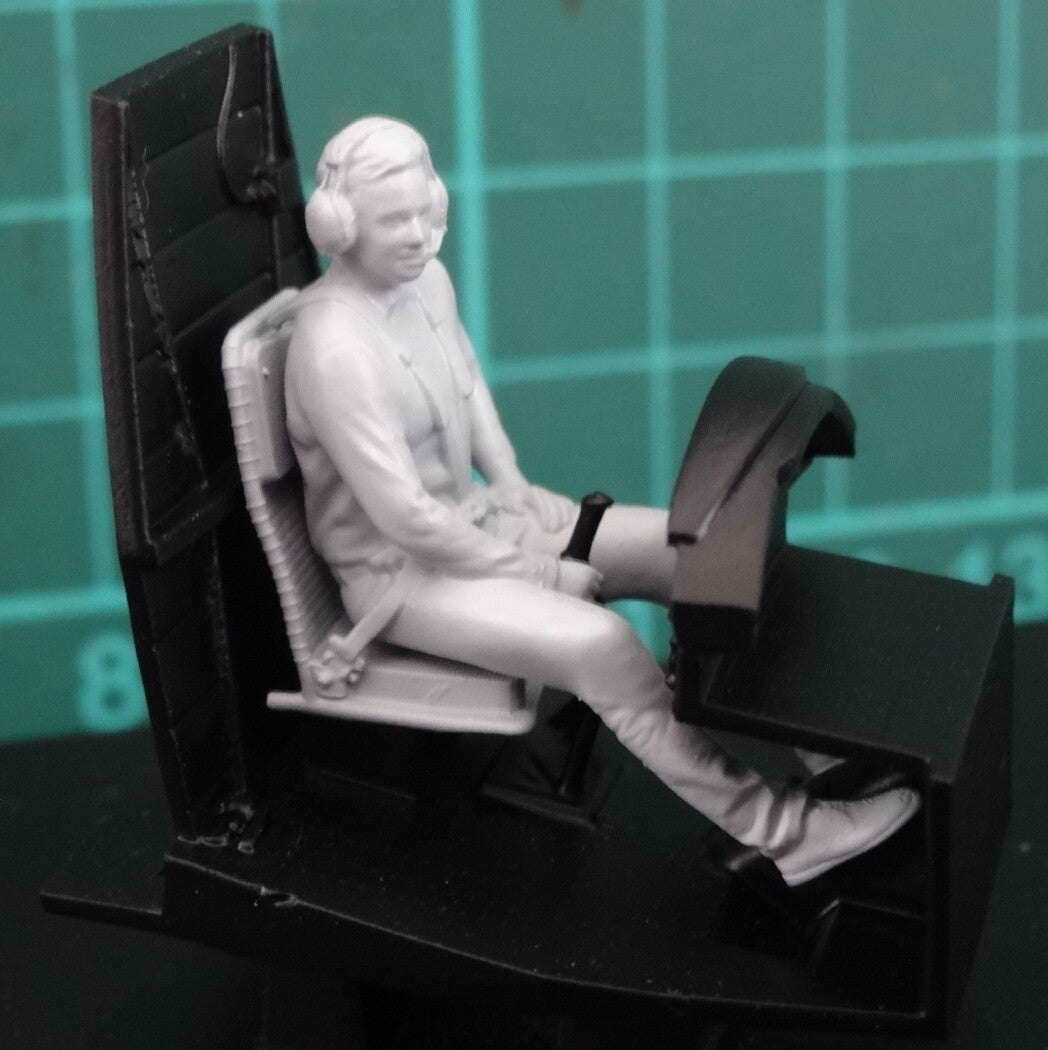 In the kit is a seated pilot figure made of resin (3D printed) adapted to the cabin.
